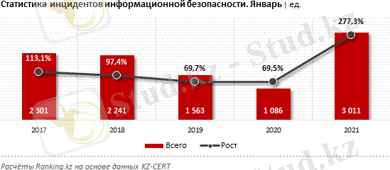 Бұл диаграммада Қазақстанның бірнеше жыл бойы хакерлердің алаяқтығынан келтірілген материалдық залал келтірілген: