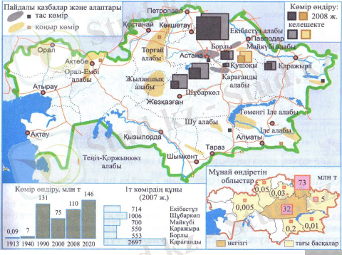 3. Қазақстанда 300-ден астам көмір кен орындары білгілі. Қарағанды, Екібастұз, Торғай, Майкөбенің қоңыр көмірінің меншікті жану жылуларын салыстырыңыз.