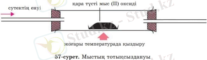 Енді қыздырылған мыс (II) оксиді арқылы сутекті өткізгенде жүретін процесті қарастырайық (57-сурет) .