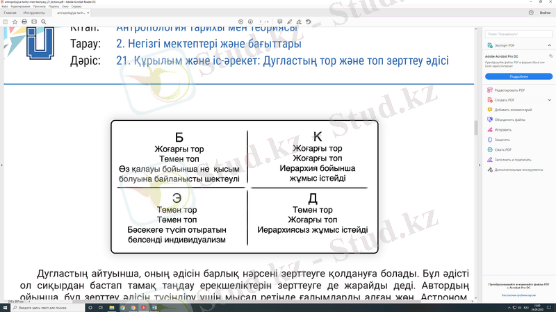 Құрылым және іс-әрекет. Дугластың тор және топ зерттеу әдісі.