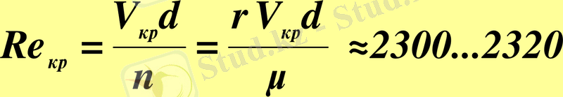 4. Осы формулаға енгізілген өлшемсіз коэффициент k барлық сұйықтықтар мен газдар үшін, сондай-ақ құбырлардың кез келген диаметрлері үшін бірдей. Бұл коэффициент Рейнольдстың критикалық саны Recr деп аталады және келесі түрде анықталады: