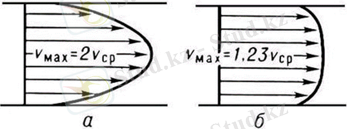 Құбырдағы жылдамдықтардың графиктері:а) ламинарлы режим; б) турбулентті