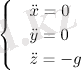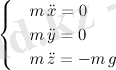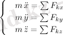 Олардың сол жақ бөлігі бізді әлі қызықтырмайды, бірақ оң жақ бөлігінде координаталар осіндегі нүктеге әсер ететін күштердің проекцияларының қосындылары бар. х және у осьтері бетінде орналассын, ал z осі оған перпендикуляр жоғары бағытталған. Бір ғана күш бар, оның х және у осіне проекциялары нөлге тең, ал z осіне проекциясы теріс, өйткені күш остің бағытына қарсы бағытталған, яғни