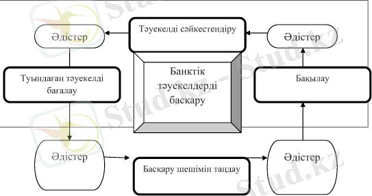Осылайша, банктік тәуекелдерді басқаруды үш кезеңнен тұратын механизм ретінде қарастыруға болады. Бірінші кезең стратегиялық басқаруға жауап береді, ал екінші кезеңде тактикалық және жедел басқару ұйымдастырылады, үшінші кезеңде жедел басқарылым.