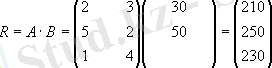 Есепті қарап, алды: 1-ші шикізат шығындары S1 құрайды = 2·100 + 5·80 + 1·130 = 730 бірлік және 2 - ші-S2 = 3·100 + 2·80 + 4·130 = 980 бірл., сондықтан матрица-шикізат s жолы жұмыс ретінде жазылуы мүмкін: