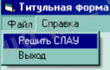 "СЛАУДЫ шешу" командасын таңдағанда "Файл → СЛАУДЫ шешу" титулдық форманың мәзірінде басты форма( Form2) ашылады.