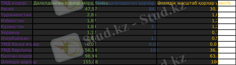 Қазақстанның мұнай-газ қоры бойынша басқа ТМД елдердің арасындағы 2013 жылдың аяғындағы көрінісі