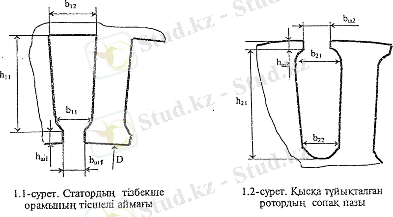 1. 6. 5 Статор пазының өлшемі (м) - b 11 , b 12, h 11 , b ш1 , h ш1 (1. 1- сурет)