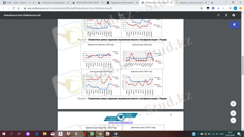 1 - сурет бойынша, 2012 және 2013 жылдар аралығында күкірт диоксидінің бірқалыпты ұлғаюын көре аламыз, оның концентрациясы 0, 19 мг/м3 және 0, 18 мг/м3. 2012 жылы азот диоксидінің концентрациясы ШРК - дан 4, 8 есе асып кетті, 0, 19 мг/м3 тең болды. Шаңның концентрациясы әр жылда күрт өзгермелі болды, 2007 жылы концентрациясы 0, 2 мг/м3, ал 2013 0, 22 мг/м3, ШРК - 0, 15 мг/м3.