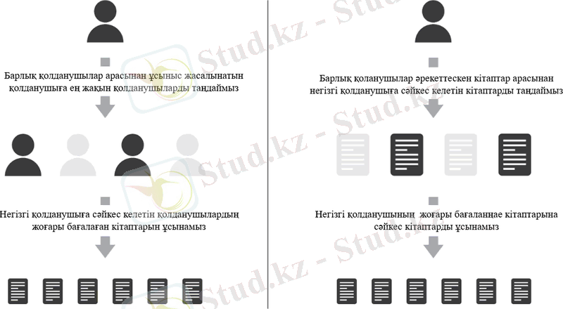 4-сурет. Қолданушыға бағытталған және элементке бағытталған коллаборативті сүзгі әдістерінің айырмашылығы