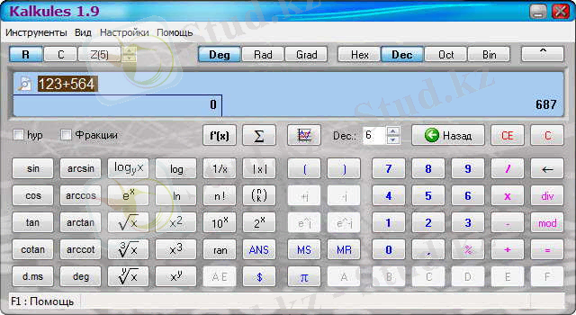 Калькулятор программасы жүктелгеннен кейін, экранға үстел үстінде пайдалануға арналған калькулятор бейнесі шығады (1-сурет) .