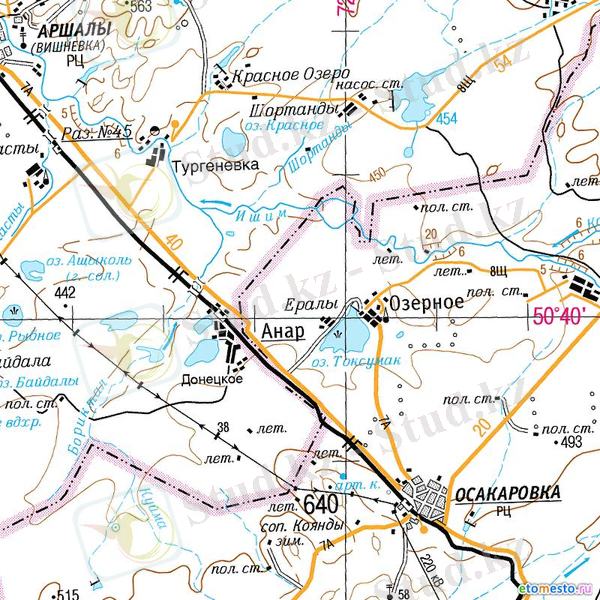Сурет 1. Есіл өзені- Түрген ауылы тұстамасының топографиялық картасы