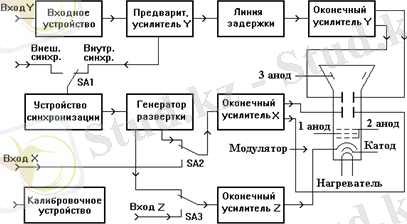 Электрондық осциллографтың жұмыс принципі және оның құрылымдық сұлбасы суретте келтірілген. 1.