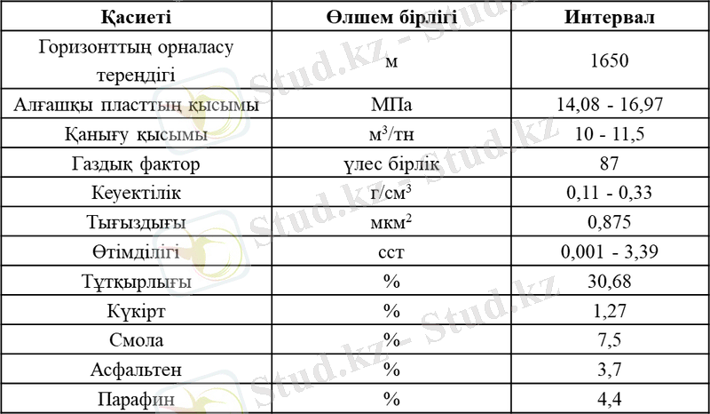 1 κесте - Қисымбай мұнай κенορнының физиκа-химиялық қасиеті