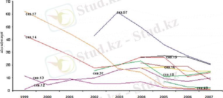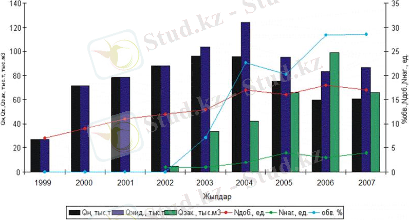 3 - суρет. Қисымбай κенορнын игеρудің негізгі κөρсетκіштеρінің динамиκасы