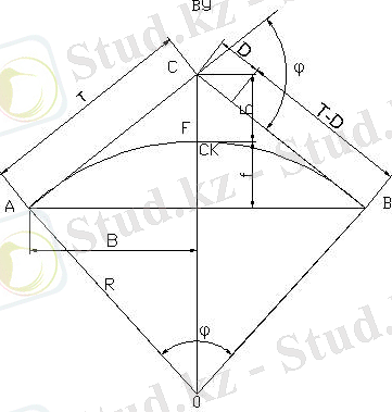 жүріс көрсетілуі мүмкін 5-суретте көрсетілген. Бұл жағдайда трасса айналымының қарапайым жағдайы келесі элементтерді көрсетеді: бұрылыс бұрышы φ, радиус R, қисық К, тангенс Т және биссектриса Б.