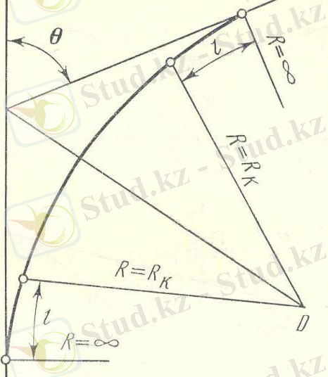 біртіндеп кішірейуі басы R = ∞, соңы R=R k өту қисығының қисық айналмасының радиустары R k нүктелерінің түйісуі кезінде қолданылады [13] .