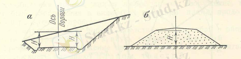 Сурет 8. Автокөлік жолының көлденең қимасының белгілері: а- үйінді; б- шұңқыр.