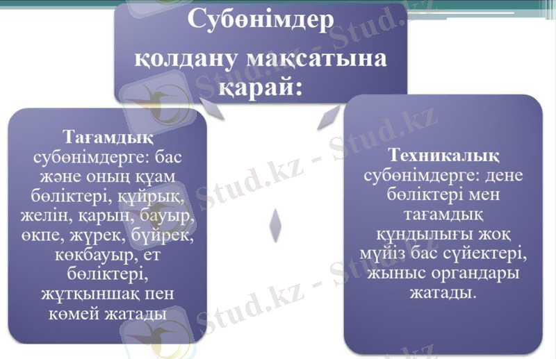 Мал субөнімдерінің түрлері, тағамдық құндылығы және ветеринариялық-санитариялық сараптамасы