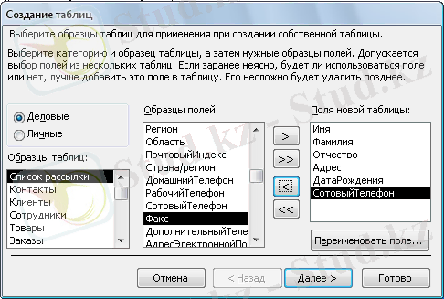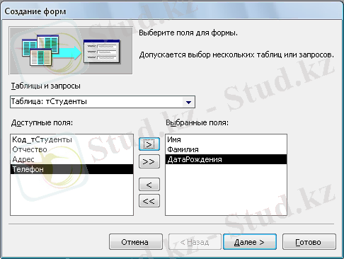 - Келесі ашылған терезеде форма құруда керек өрістерді таңдаймыз (Сурет 26) .