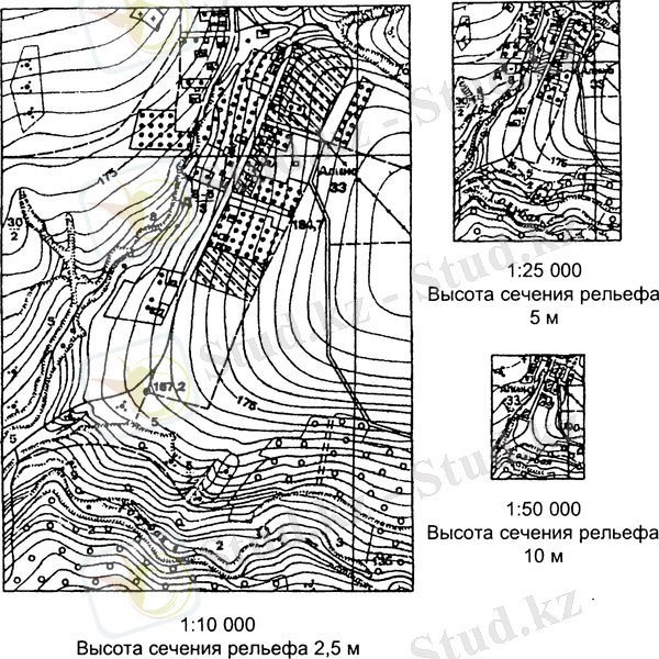 3. Карталастырылатын объектілердің ерекшеліктері . Картографияның теориясында мұны объектілер суретін жалпыластыру деп атайды. Географиялық объекттің суретіндегі детальдарын қысқарту барлық карталарда қолданылады. Мысалы, ұсақ масштабты сонымен бірге шолу топографиялық карталарда өзендердің, көл мен теңіздер жаға бойы сызықтарының барлық бұрылыстары толық көрсетілмейді, егістікке қатысты жерлер шекараларының сызықтары да дүрыс көрсетілмейді. Бірақ объектілердің сипатты белгілері мен оның жалпы конфигурациясы толық бейнеленеді.