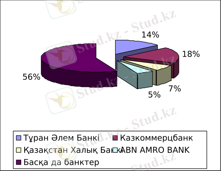 Келесі сурет 1 - де республикамыздың жетекші банктерінің меншік капиталының үлесін көруге болды [5; 25] .