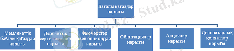 Бағалы қағаздардың Қазақстан нарығындағы қаржылық құралдарына карай оның құрылымын былайша көрсетуге болады: