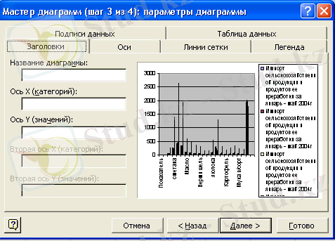 Бұл қадамда мәліметтердің қайда орналасқанын - жолда ма, бағанада ма- көрсетіп, олардың түсіндіру мәліметтерін (түсініктеме-легенда) қай аралықтан алатынымызды да көрсету керек. Түсініктеме диаграммадағы мәліметтердің аттарын және оң жақта орналасатынын ңұсқауыштарын-маркерлерін бейнелейді (24. 4-сурет) .