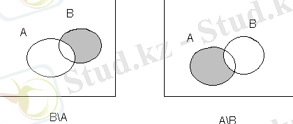 - А, В жиындарының айырымы деп А\В⇆A-B⇆{xx∈A және х∉В}