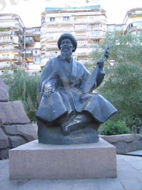 Қазақтың халық ақыны Жамбыл Жабаевқа (1846-1945) туғанына 150 жыл толуына байланысты 1996 жылы Достық даңғылы бойында («Искра» кинотеатрының алдында) орнатылды. Авторы мүсінші Б. Әбішев, сәулетшілері С. Қ. Баймағамбетов, Т. Ералиев, С. Фазылов.