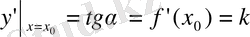 нүктесінде туындысы бар және ол мына формула бойынша табылады: