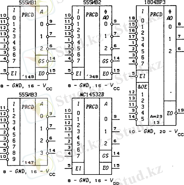 555ИВ2 - екілік кода разрядтарының Z-жағдайындағы шығыстары бар 8х3 приоритетті шифраторы;