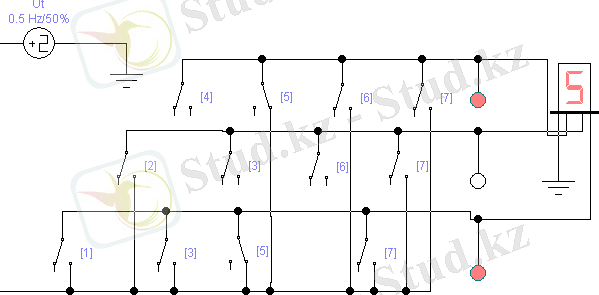 1 . . . 7 ондық сандарын екілік кодаға кодалау үшін шифратордың электромеханикалық аналогы берілген сандардың дара, қосарланған және үшеулеген қайта қосқыштар түріндегі «пернелерді» қамтиды (3-сурет) . «Пернелерді» іске қосу/сөндіру жағдайы Ut бір полярлы импульстер көзінен тактылы импульстермен орнатылады.