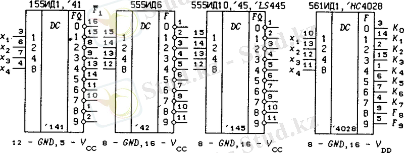 2-сурет. ТТЛ және КМОП серияларының стандарттары негізінде 4х10 дешифраторларының шартты белгіленуі.
