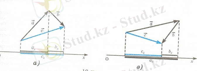 Векторлар қосындысының не айырымының проекциясын табу үшін қорытқы векторды тауып, оның проекциясын анықтаудың қажеті жоқ, веторлардың проекцияларын, таңбаларын ескере отырып, қосса болғаны.