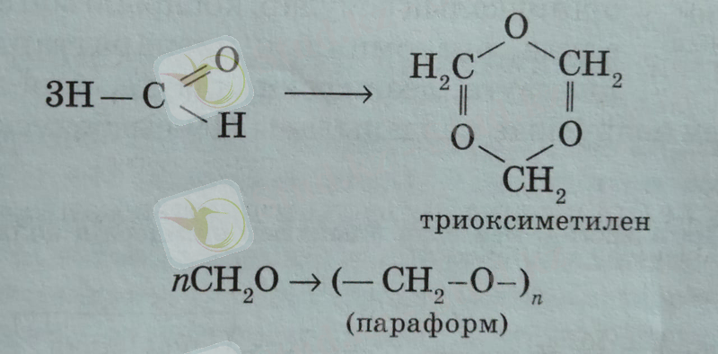 4. Формальдегидтің полимерленуі, циклді және тізбекті қосылыстар түзе жүреді: