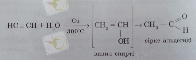 3. Ацетиленнен Кучеров реакциясы жағдайында су қосып, альдегид алады: