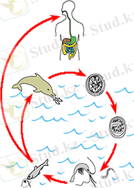 2. 1 Адам аскаридасы бүкіл әлемде кең тараған және ең зиянды құрттардың бірі. Аналығының ұзындығы 20-40 см, аталығы - 15-25 см. Ересек түрлері адамның ащы ішегінде паразиттік тіршілік етеді. Ұрықтанған жұмыртқалары нәжіс арқылы ішектен сыртқа шығарылып, суға, топыраққа түседі. Жұмыртқалар тығыз қабықшамен қапталынған, сондықтан ортаның әр түрлі қолайсыз жағдайларына өте берік, төзімді. Тіпті олар 2-4% улы калий немесе натрий ерітіндісіне бір ай уақыт, ал формалиннің ерітіндісінде 4-5 жылға дейін тірі болған.