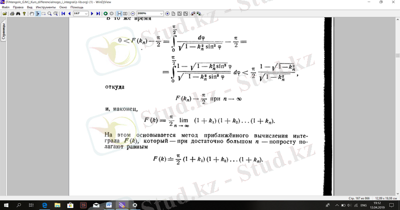 Интегралмен дәлелдеу. Келесіні белгілейік: (1)