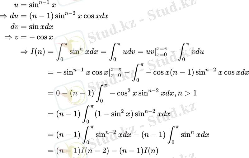 Енді n > 1 деп болжаймыз. Содан кейін бөліктеп интегралдаймыз: