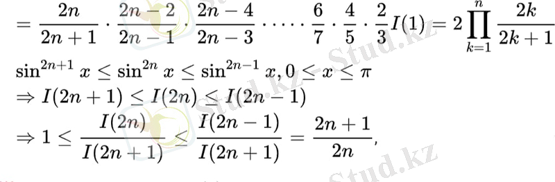 (Валлис интегралдары түрі) . Бөліктеп интегралдасақ