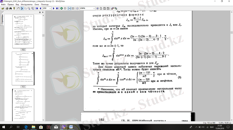 интегралды қарастырайық мұнда n-бүтін және теріс емес сан.