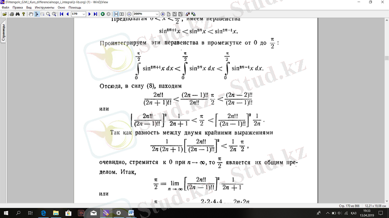 cos2 n +2 x ≤ cos2 n +1 x ≤ cos2 n x , (*) сүйене отырып, қайдан табуға болады: