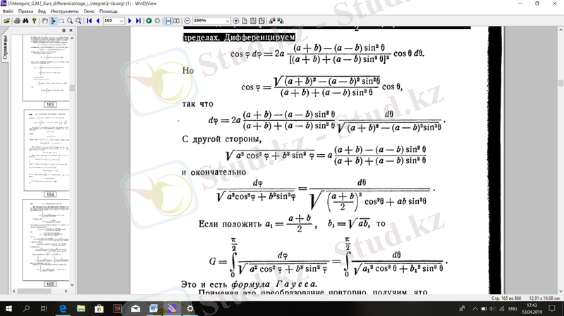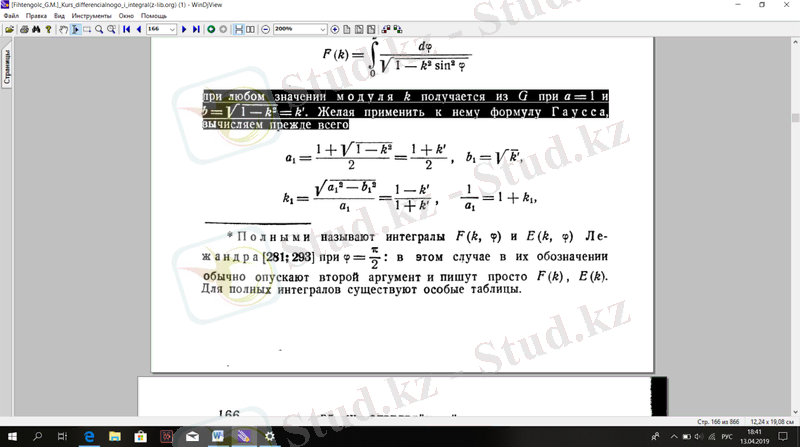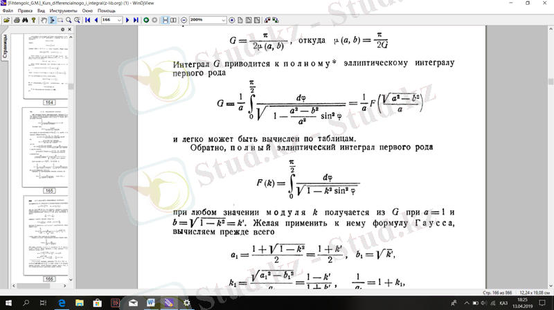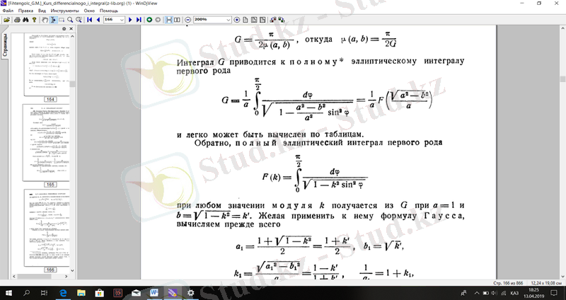 шегіне өтіп, табатынымыз , одан G интегралы бірінші текті толық эллиптикалық интегралға келтіріледі