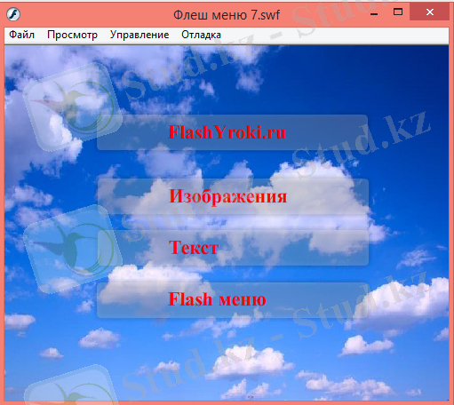 Осымен жұмыс аяқталады, жұмыс нәтижесін көру үшін жоғарғы мәзірден «Control -> Test Movie» тармағына өтіңіз.