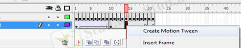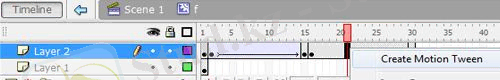 12. 1-10 мен 10-21 аралығындағы сұр қабаттың үстіне тінтуірдің оң жағын басыңыз (Layer 2) және ашылмалы тізімнен «Motion Tween жасау» тармағын таңдаңыз.