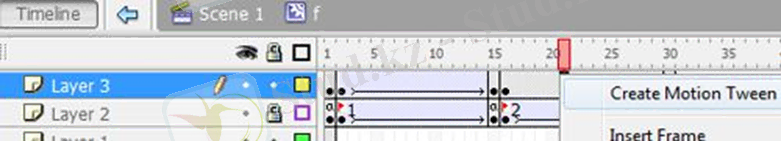 25. 2-15 мен 16-30 аралығындағы аумақты тінтуірдің оң жақ түймешігімен басып, ашылмалы тізімнен «Motion Tween жасау» тармағын таңдаңыз.