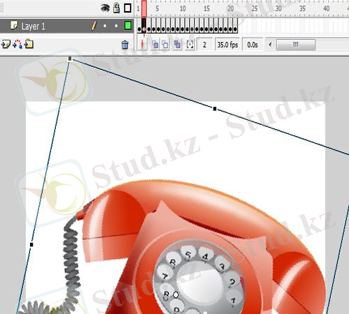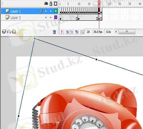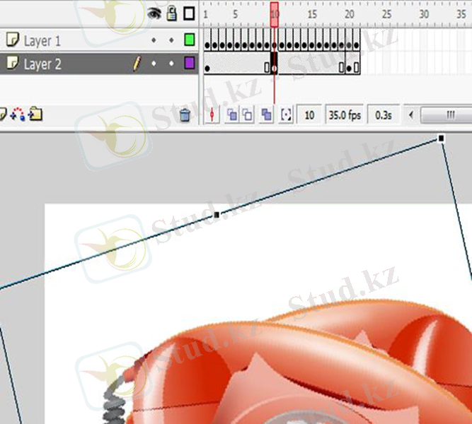 33. «F6» түймесін басу арқылы уақыт сызығының 2, 15, 16 және 30 кадрларында негізгі кадрларды жасау.
