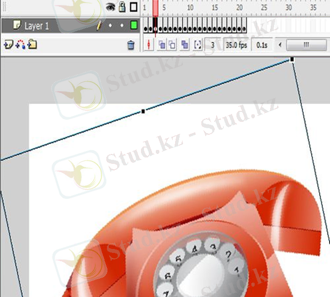 6. 3 кадрға өтіп, «Free Transform Tool (Q) » құралын таңдап, телефонды таңдап, оны сәл бұрыңыз.