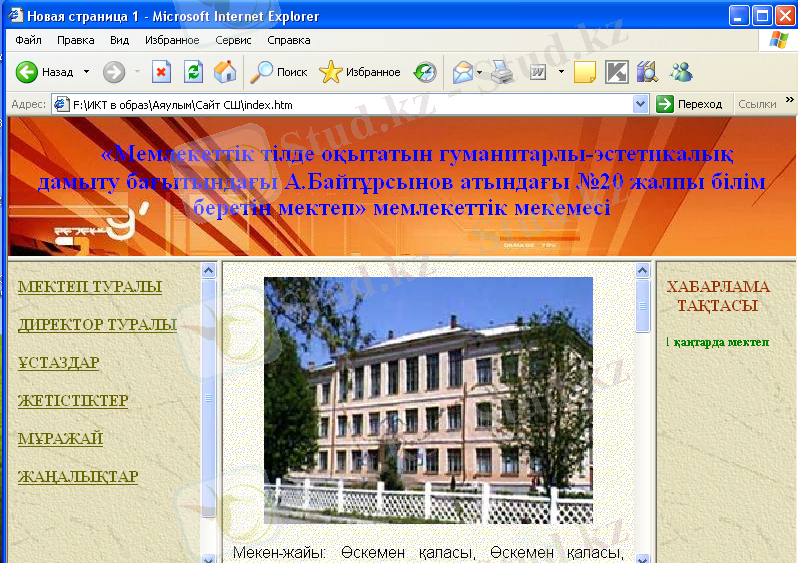 6) Word құралдарымен web-сайт құру. Нәтижесінде суреттегідей web-сайт шығуы керек.
